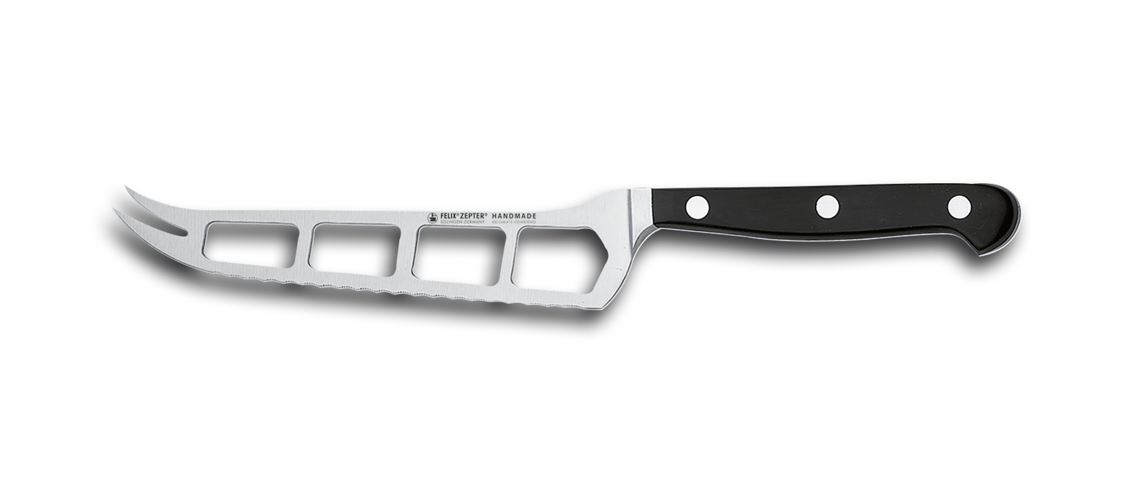 Brie, Camembert, Gorgonzola – ganz gleich welche Weichkäsesorte Sie bevorzugen, ein Problem begleitet alle: Der Käse lässt sich mit einem normalen Messer kaum schneiden. Die Hälfte bleibt an der Klinge kleben. Mit dem speziellen Käsemesser der Serie GLORIA LUX gehört dieses Bild der Vergangenheit an. Die großen Aussparungen an der 14 cm langen Klinge verhindern, dass weicher Käse an der Schneide hängen bleibt. Sie suchen noch ein Geschenk für einen Käseliebhaber? Sie haben es gefunden. Wir haben nur noch wenige Messer im Bestand. Bestellen Sie jetzt.
