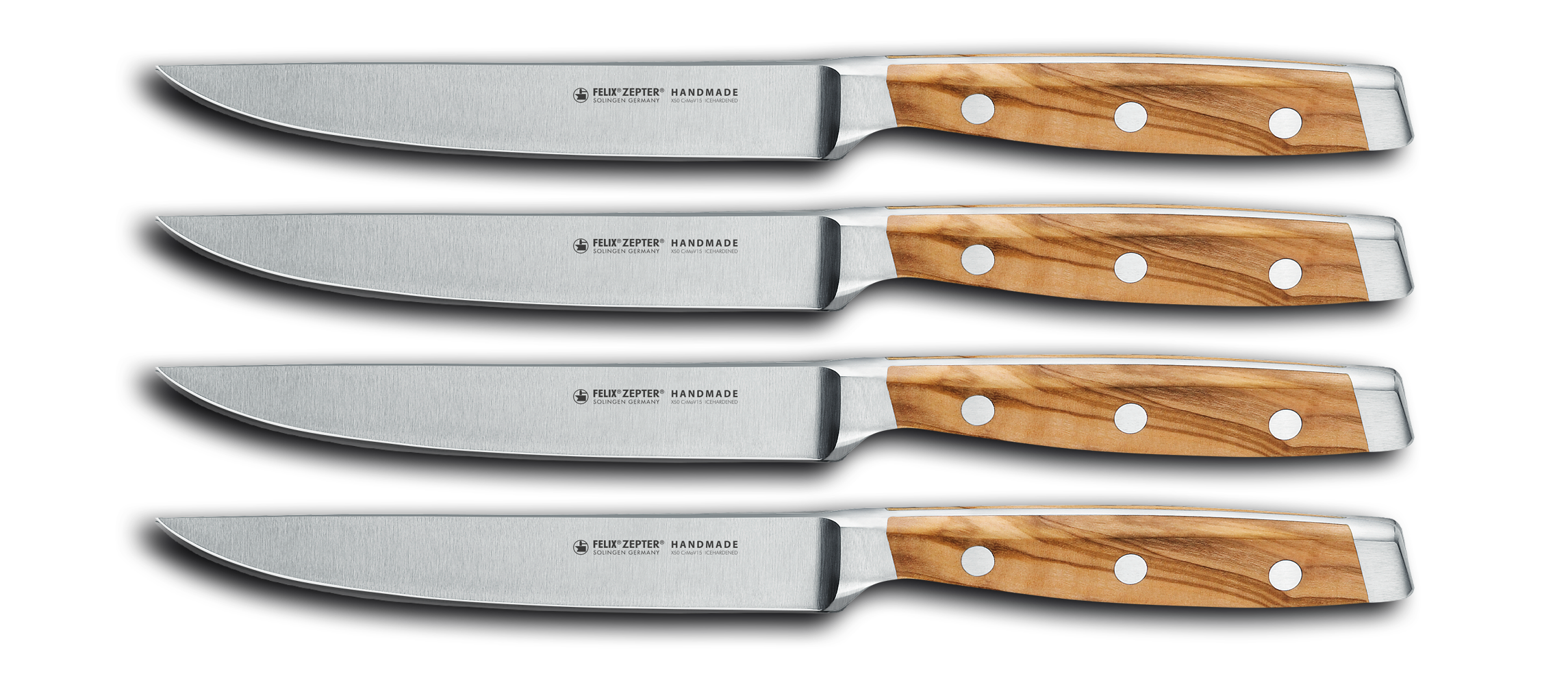 Auf der Suche nach einem Geschenk für Steakliebhaber? Dann liegen Sie mit diesem Messer-Set der Serie FIRST CLASS WOOD genau richtig. Die Messer gleiten durch das Fleisch, zerreißen aber nicht die Fleischfasern. Wer einmal sein Fleisch mit einem Steakmesser geschnitten hat, der will nie wieder ein anderes Messer dafür benutzen.