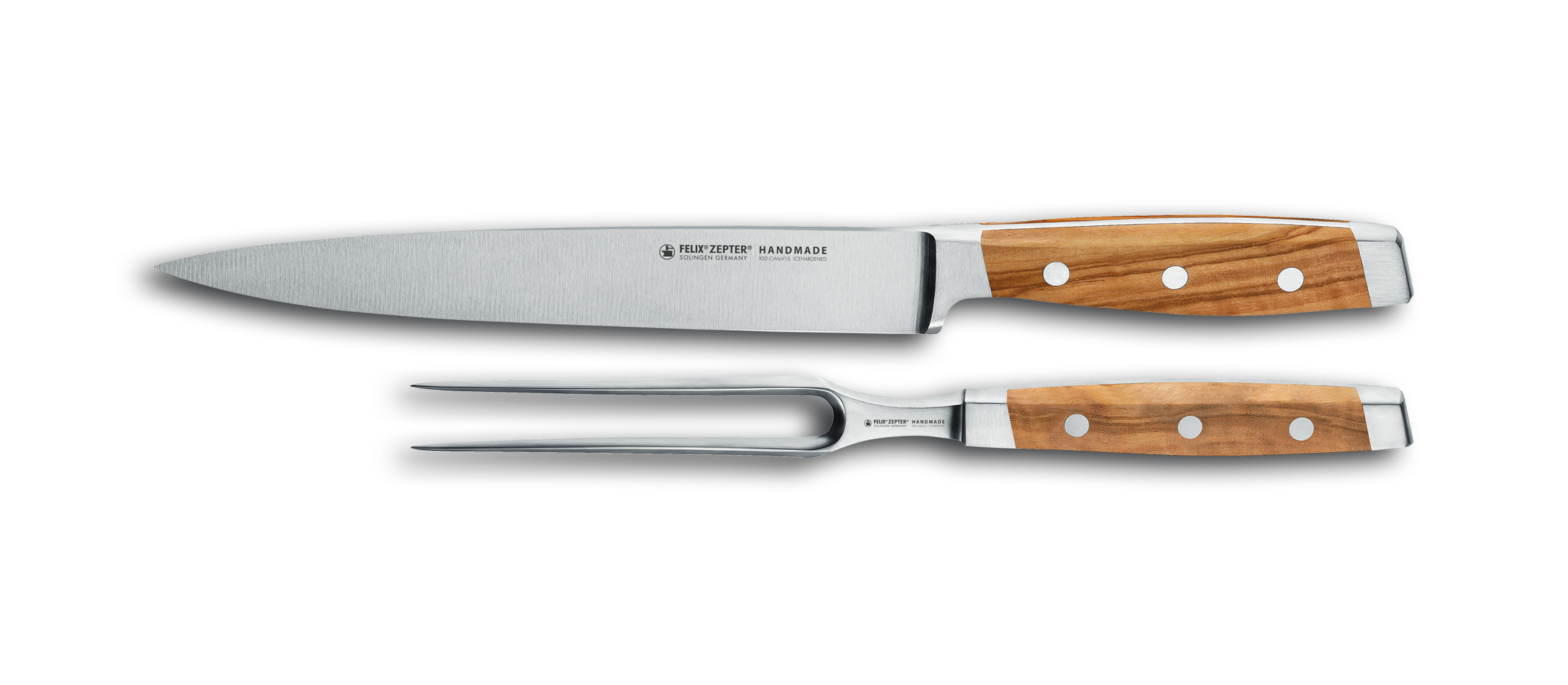 Mit diesem Duo wird der Sonntagsbraten zum Erlebnis: Das FIRST CLASS WOOD Fleisch- und Tranchiermesser und die FIRST CLASS WOOD Fleischgabel ergänzen sich perfekt. Mit der Fleischgabel können Sie den Braten festhalten, mit dem Messer Scheiben lösen. Dank des traditionellen Kullenschliffs bleibt das Schneidgut nicht an der Klinge haften. Mit der Fleischgabel können zudem Fleischstücke gewendet oder der Garzustand optimal überprüft werden.