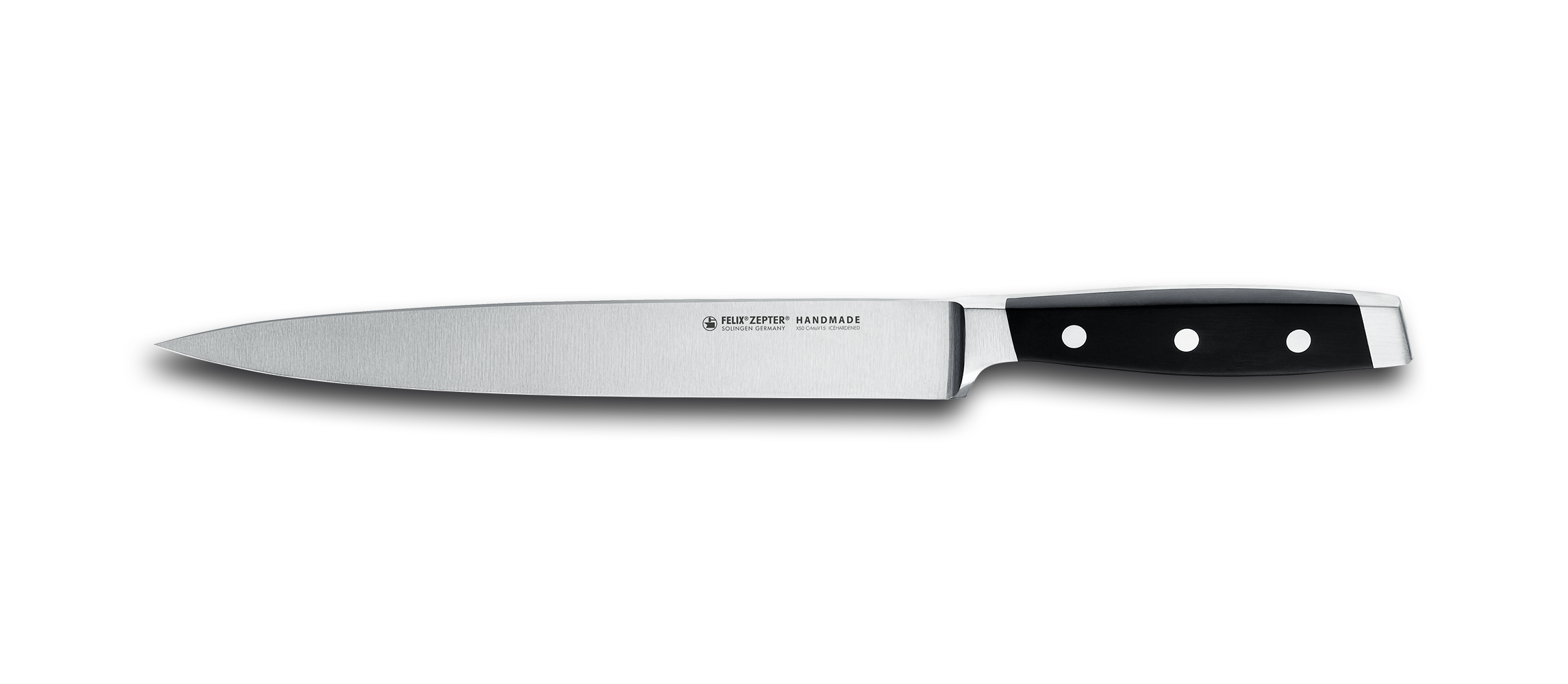Die besonders lange Klinge löst mit wenigen Schnitten eine Scheibe Braten oder schneidet das Fleisch hauchdünn. Das FIRST CLASS Fleisch- und Tranchiermesser ist einfach das perfekte Festtagswerkzeug. Es ist die perfekte Hilfe zum Portionieren von Braten, Fleisch und Schinken.