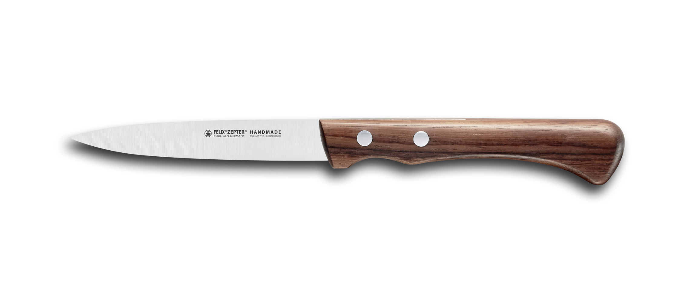 Das Spickmesser der Serie CUISINIER ist ein vielseitiges Werkzeug und eine unersetzliche Hilfe in der Küche. Dank seiner scharfen Spitze eignet es sich perfekt zum Spicken von Braten. Knoblauch oder Speck können in ein Fleischstück eingebracht werden. Gemüse putzen, Obst schälen oder Fisch verarbeiten – auch diese Arbeiten sind mit dem Spickmesser im Handumdrehen erledigt. Das warme Holz und die tolle Haptik des Griffs machen das Messer zu einem besonderen Design-Stück.