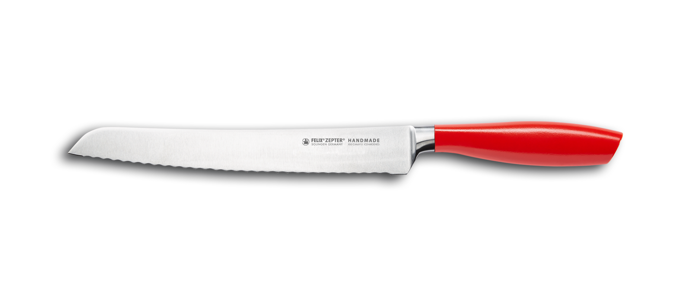 Der konkave Wellenschnitt ist das Geheimnis dieses Brotmessers der Serie SIZE S Red. Dadurch lassen sich harte Brotkrusten problemlos und gleichmäßig durchtrennen. Die spitzen Messer-Zähne reißen das Schneidgut an, so gleitet die 22 cm lange Klinge mühelos durch Brötchen und Baguette. Aber auch Früchte mit fester Schale schneidet das Brotmesser ohne Probleme.