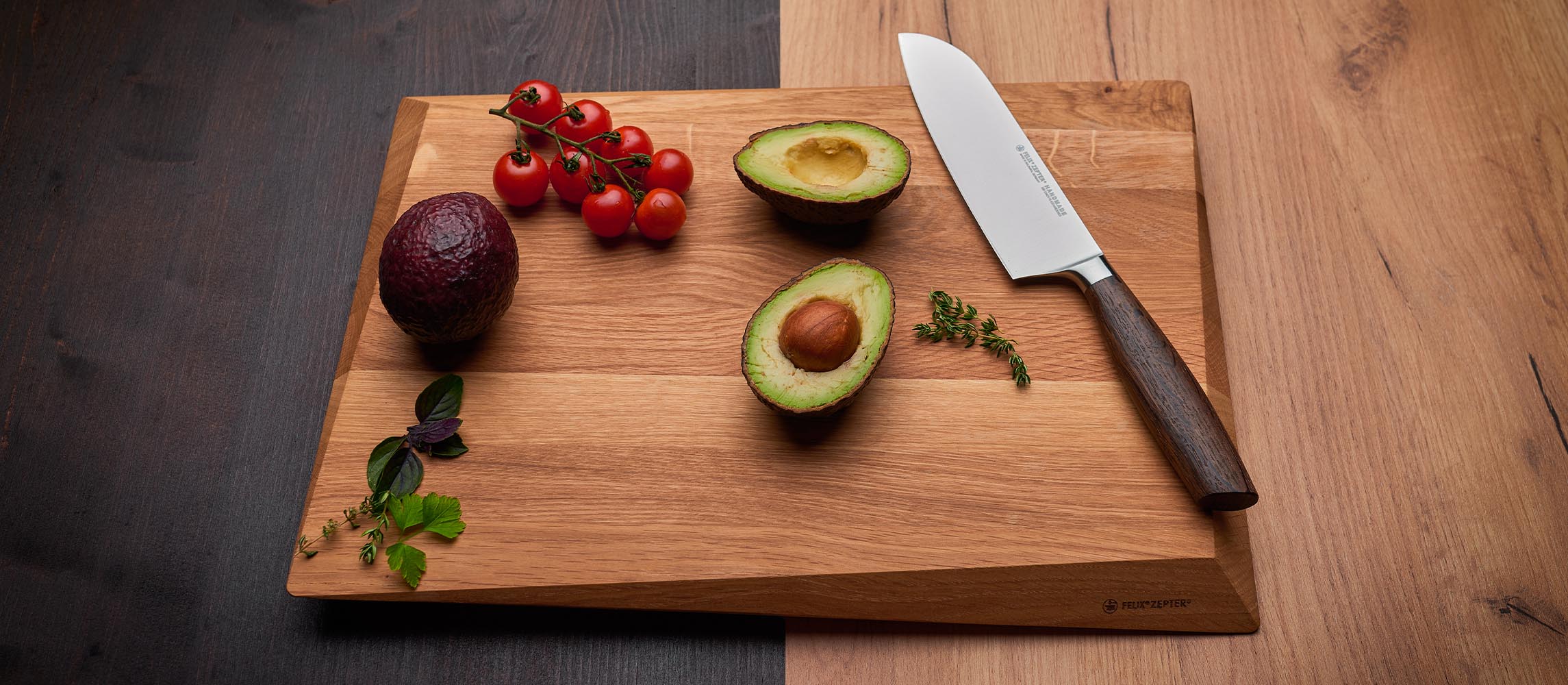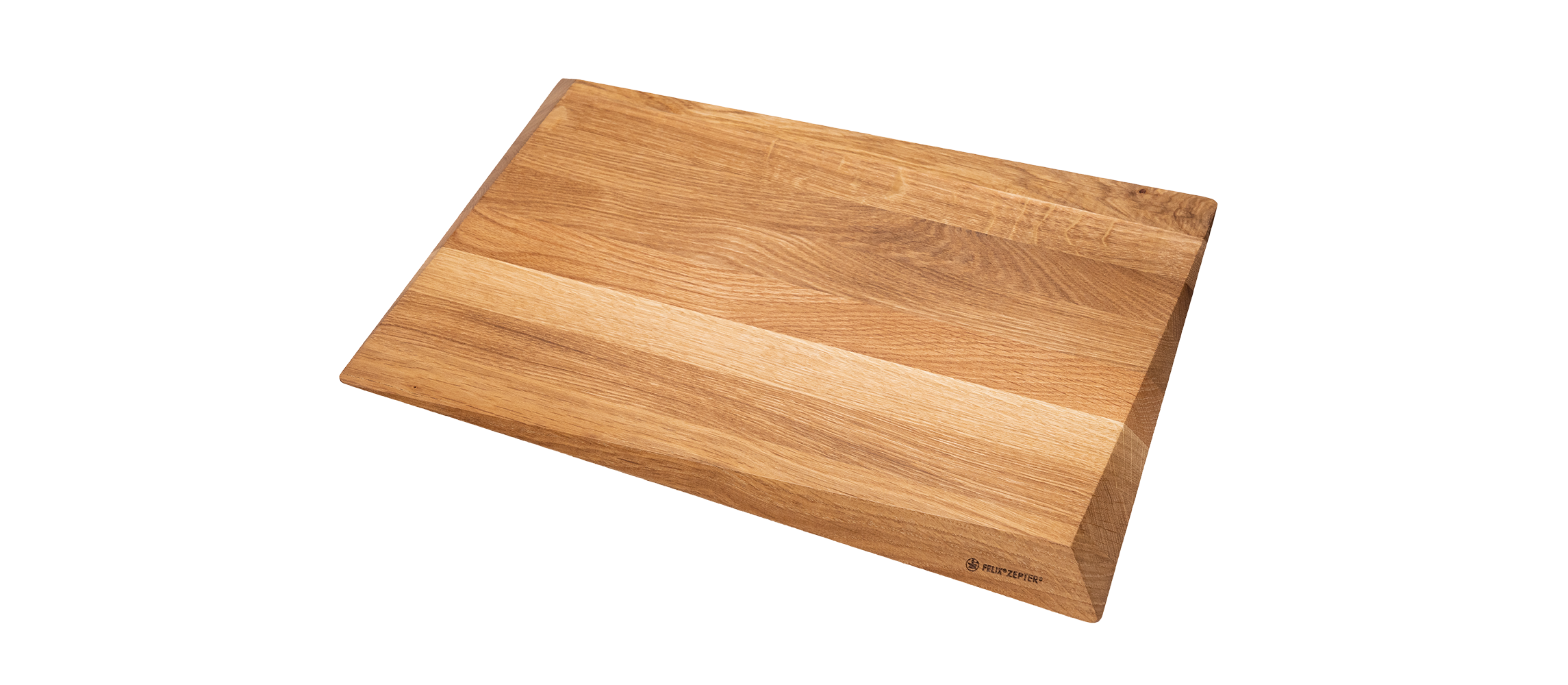 Designobjekt aus Eiche. Dieses Schneidbrett ist ein echter Hingucker. Felix Schneidbretter werden aus hochwertigen und anti-bakteriellen Hölzern hergestellt. Ein Holzbrett als Schneidunterlage hält Ihre Felix Messer lange scharf und ist zudem hygienischer als Kunststoff. Die Holz-Maserung macht jedes Brett zu einem Unikat, denn jeder Baum ist einzigartig. Unsere ebenfalls sehr stylische Magnetleiste in Eiche passt hervorragend zu diesem Schneidbrett. Die Verpackung besteht aus Grasfasern und ist daher besonders nachhaltig, da das Gras schnell nachwächst und Ressourcen wie Wasser oder Energie schont.