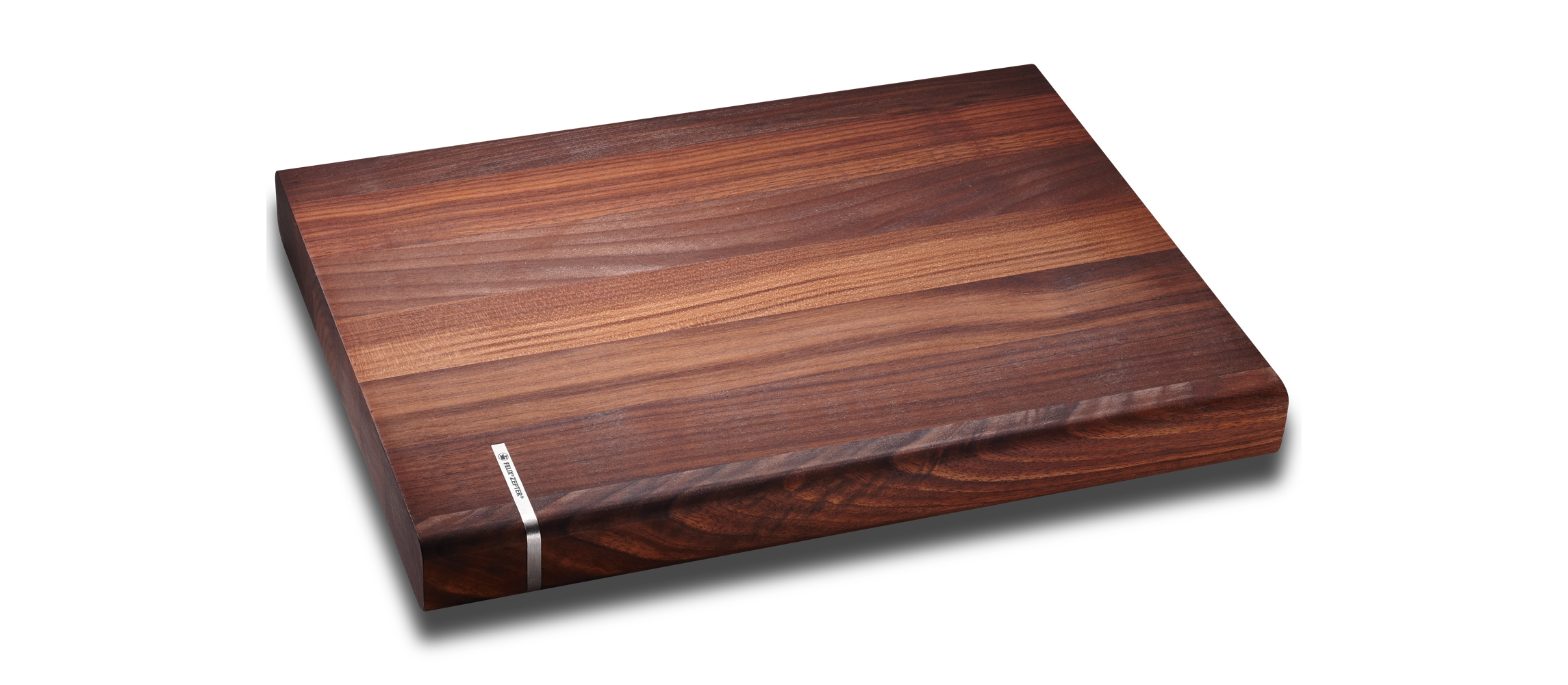 Messer brauchen als Schneidunterlage ein Holzbrett. Auf Glas, Keramik oder Marmor wird die Klinge stumpf. Zudem ist Holz hygienischer als Kunststoff. Für die Schneidbretter von FELIX werden ausschließlich hochwertige gerbsäurehaltige und damit antibakterielle Hölzer verwendet. Dank der sehr schönen Maserung ist jedes Brett ein Unikat. Das Schneidbrett aus massivem Nussbaum-Holz überzeugt Design-Liebhaber – die schöne Farbe passt vor allem zu Messern mit dunklem Griff.
