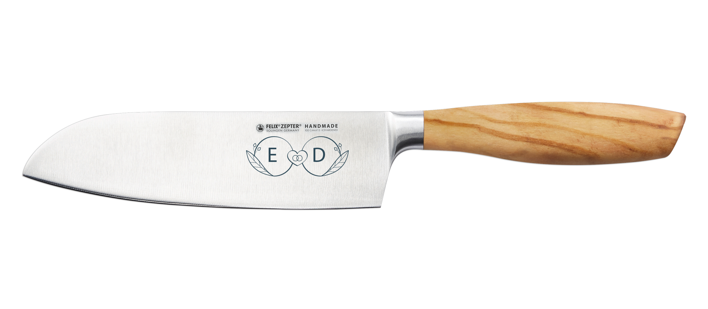 Die Initialen des Hochzeitspaares auf Klingenstahl verewigt. Persönlicher kann ein Geschenk nicht sein. Bestellen Sie jetzt.
